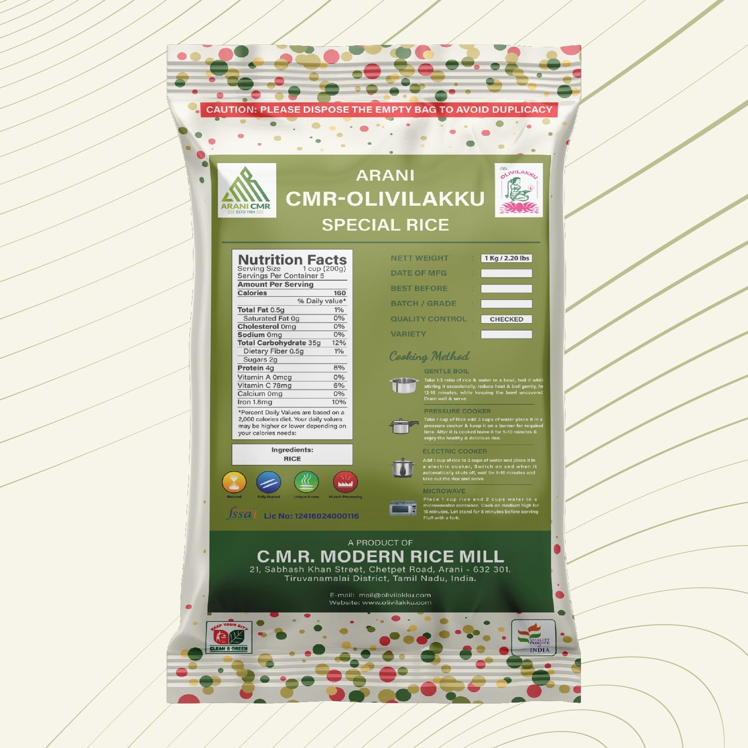 Olivilakku Idly Rice, also known as Idli Dosa Arisi, is rice variety specifically used to produce the softest and fluffiest idlis and dosas, quintessential dishes in South Indian cuisine. Available in a convenient small packages, this rice is meticulously processed and perfectly aged to ensure the best results. The unique ADT rice variety used in enhances its quality, making it an essential ingredient in any South Indian kitchen. The superior quality of Olivilakku Idly Rice lies in its ability to produce a batter that rises well and yields idlis and dosas with perfect texture and taste. The long grain rice used in this product is carefully selected and processed to retain its natural properties. This ensures that the rice blends smoothly and ferments well, resulting in a batter that produces idlis that are light, airy, and delightfully soft, and dosas that are crispy and golden. The unique properties of this rice make it a preferred choice for making a variety of traditional South Indian breakfast items and snacks. One of the significant benefits of Olivilakku Idly Rice is its high fiber content. Dietary fiber is crucial for maintaining a healthy digestive system. The fiber in Olivilakku Idly Rice helps in the smooth absorption of nutrients, ensuring that you get the most out of your meals. In addition to fiber, this rice variety is rich in essential vitamins and minerals such as B vitamins, iron, and magnesium. These nutrients play a vital role in energy metabolism and overall well-being. Incorporating Olivilakku Idly Rice into your diet ensures that you are consuming a nutritious and balanced meal. The natural aroma of Olivilakku Idly Rice is another standout feature that enhances the overall flavour of your dishes. The aromatic quality of the rice adds an authentic South Indian taste to idlis and dosas, making every bite a delightful experience. The easy fermentation of rice enhances the taste profile of the batter, making it easier to digest.